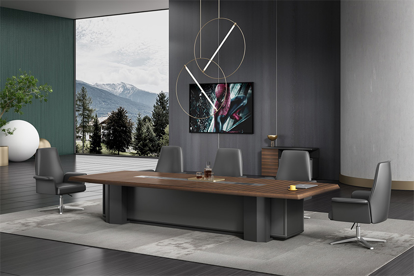浩韵系列  深邃神秘,时尚富有魅力。态势沉稳又不失灵动,富有个性而不张扬。设计灵感源于建筑的倾斜式支撑给人带来的冲击感。不同材质的相互碰撞,实木结合金属嵌件,充满现代气息。在现有的办公功能上结合隐藏的电动升降台,将科技与美学完美结合,打造时尚简洁的现代化办公空间。